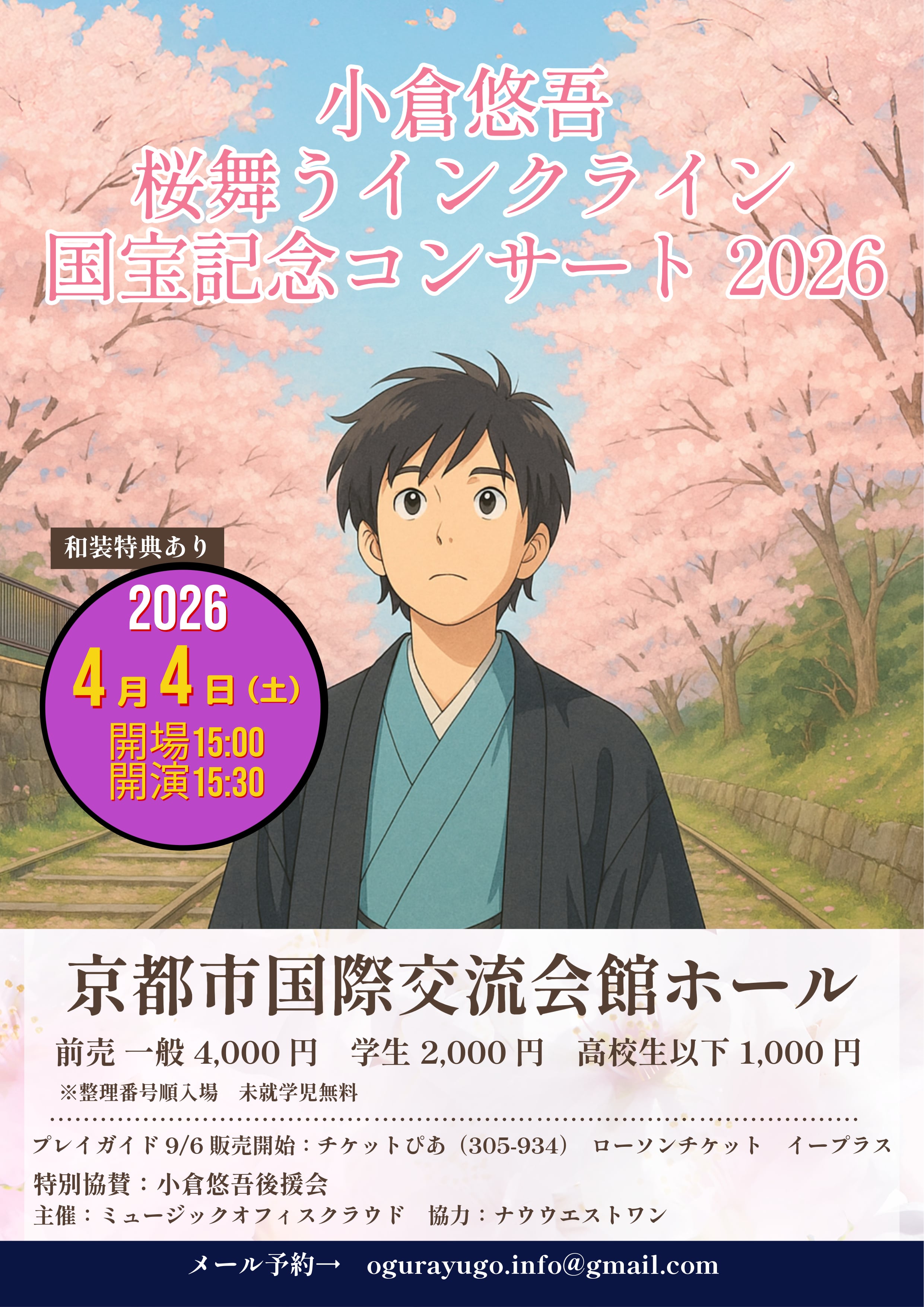 【チケット学生】2026/4/4(土)京都市国際交流会館「桜舞うインクライン国宝記念コンサート」